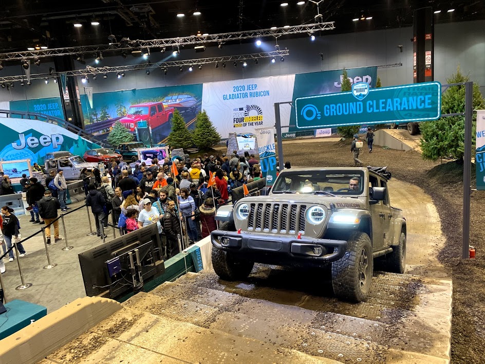 Gordinier Group professional drivers demonstrate Jeep’s hill-climb capability by navigating up and over a two-story 30-degree ramp, showcase Jeep’s differential system and prove the stability as they move over the many off-roading obstacles. It’s a must see at the auto show and the crowds gather as soon as the doors open.