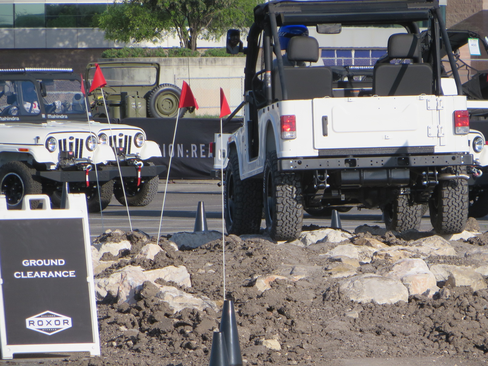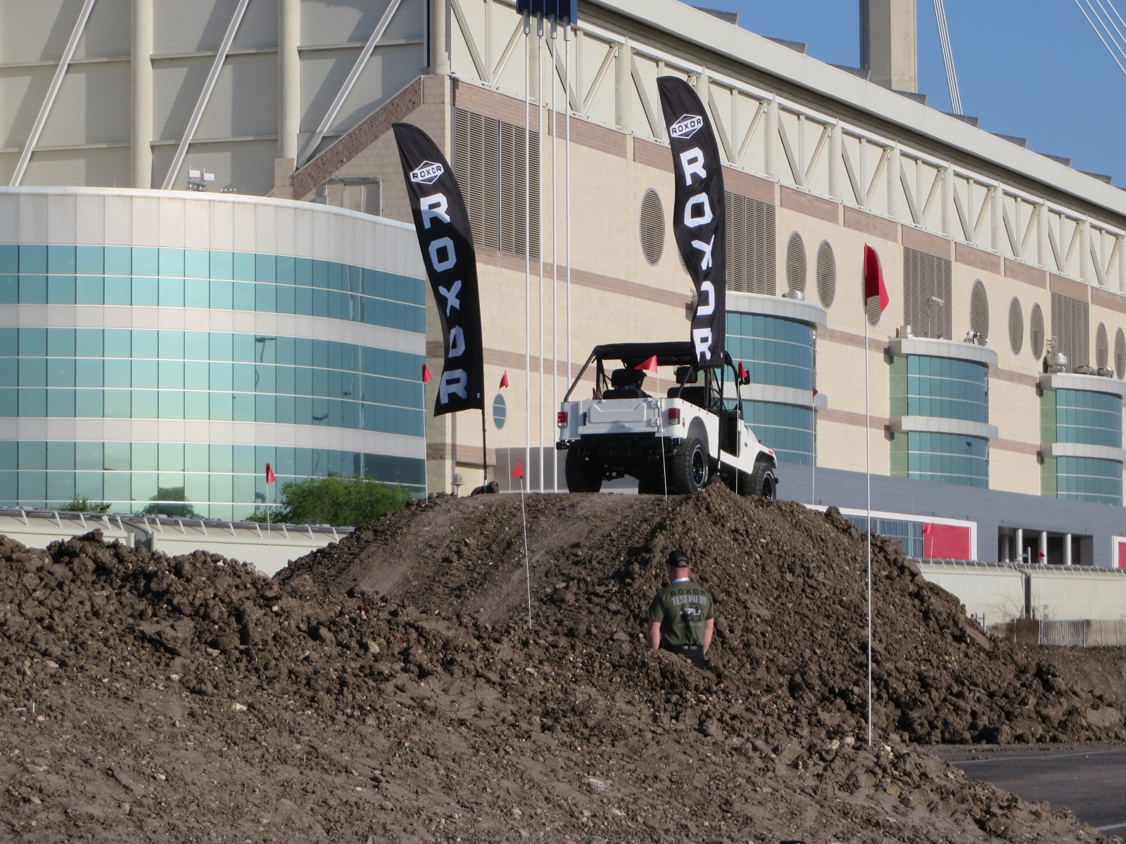 Dealers and media outlets converged in San Antonio, eager to learn about the Roxor and excited to get behind the wheel. GG operators built a course in the AlamoDome parking lot that both challenged the vehicle and driver, but was still able to throughput the several hundred amped dealers. As an added challenge for the course design, all Roxor test drive units had manual transmissions (as well as 2-speed transfer cases). This can sometimes be tricky when the public is driving. Luckily, the Roxor had so much low-end torque, it was easy for novice manual drivers to crawl over the boulder pile, log tilt, side hill, and other steep obstacles created for this unique test drive.
