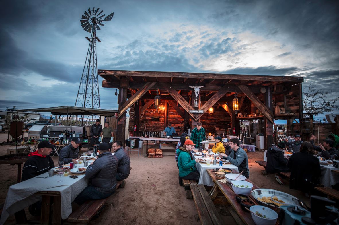 Once on the Mojave Road, our team led a group of 10, 2023 Nissan Frontier Pro4X trucks. The media were treated to a narrated history of the road throughout the drive and fresh trail-side lunches. Along the way, the group posed for photos to recreate images taken on the original trip in 1983. Each night, upon arrival in camp, media guests were escorted to their pre-built tents to drop their gear and relax. Craft cocktails preceded a gourmet dinner with wine pairings provided by our friends from Overland Cookery. On day 2, vigilant monitoring of weather radar by our trail team enabled them to route the group around some inclement weather and get to camp safely. The trip was a complete success, and our media guests enjoyed an incredible experience in the desert.