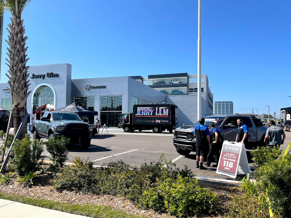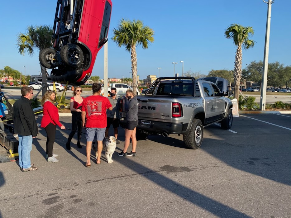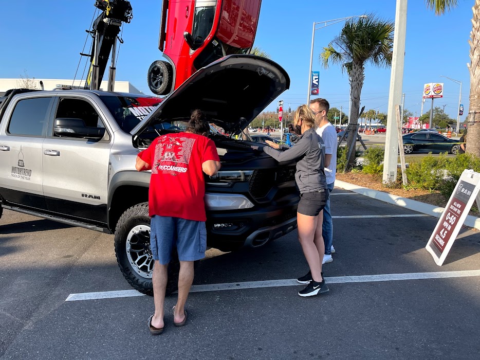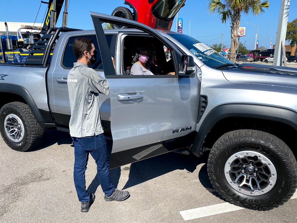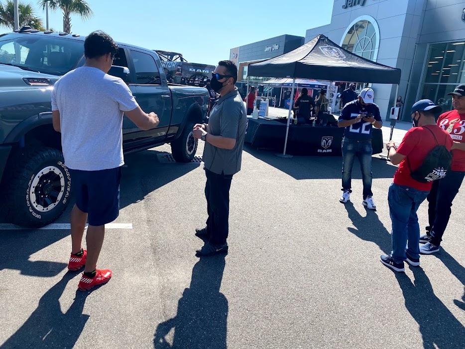 To kick off the Super Bowl 2021 festivities, Jerry Ulm Chrysler, Jeep & Ram in Tampa, Florida hosted a VIP private preview party where RAM Truck showcased two of its superstars from the RAM lineup. The 2021 RAM TRX 1500 was there with its 702-horsepower Supercharged 6.2L Hemi v8 Engine to wow the fans as well as the 2021 RAM Power Wagon 2500 displaying the heavy duty side of RAM. Gordinier Group Product Specialists were on-hand to highlight each and every feature these trucks have to offer. The crowds gathered to get a good look and feel for the popular trucks.