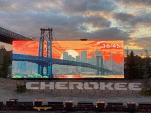 2026 Jeep Cherokee. Set against the stunning Manhattan skyline, this unique build took place on a barge spudded in the East River, directly off Domino Park in Brooklyn, NY.
